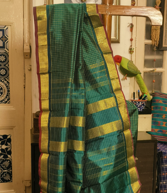 Handwoven Pure Mulberry Two Tone Zari Border Bengal Silk