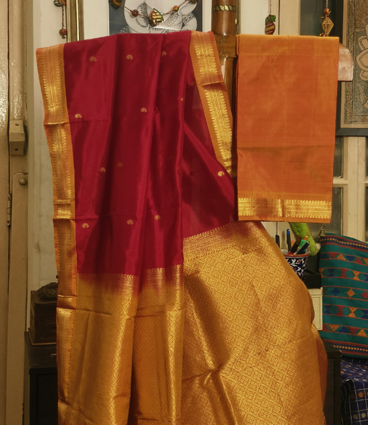 Handwoven Soft Silk Kanjivaram Saree Red and Yellow