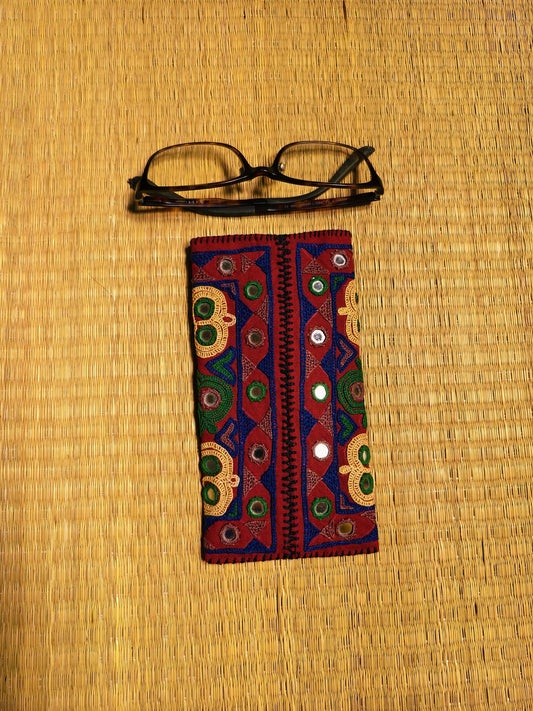 Maroon Multicolour Kutch Hand-Embroidered Spec Case