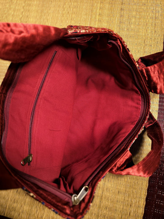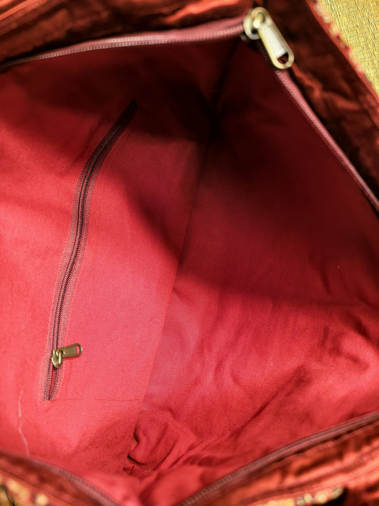 Pure Silk Maroon Multi Kutch Hand-Embroidered Big Tote Bag