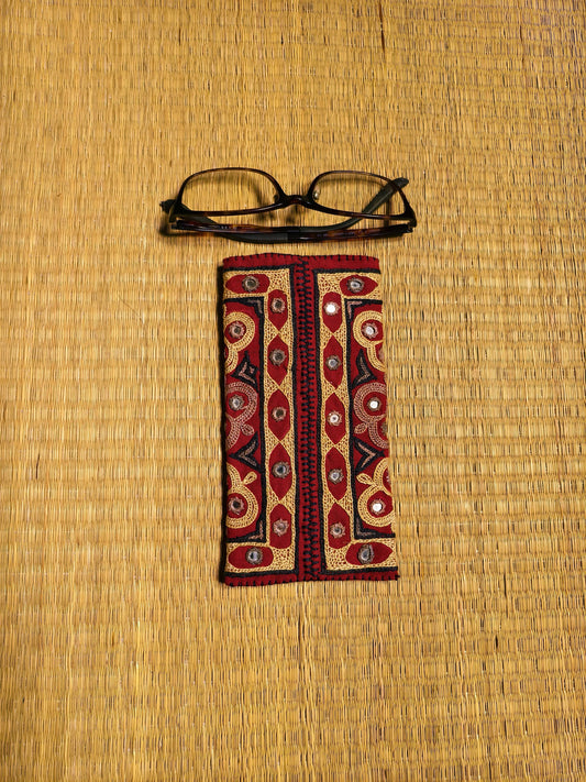Red Multicolour Kutch Hand-Embroidered Spec Case