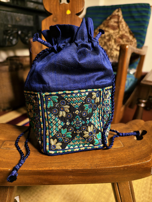 Blue Kutch Embroidered Potli Bag