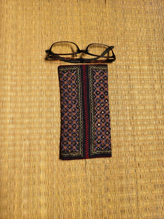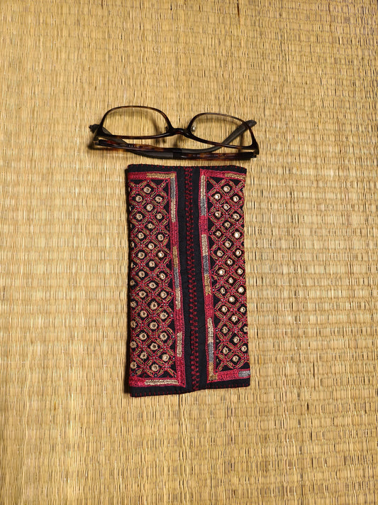Black Red Kutch Hand-Embroidered Spec Case