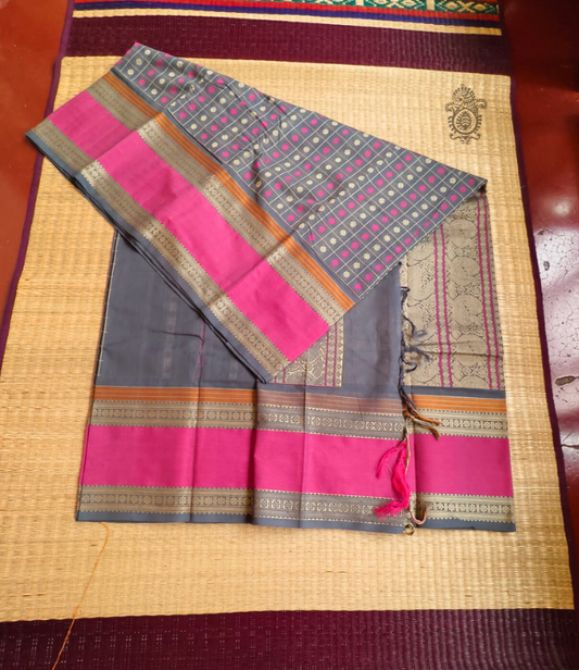 Handwoven Pure Cotton Kanchipuram Saree Deep Grey