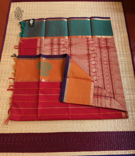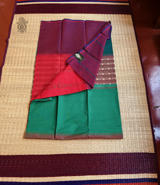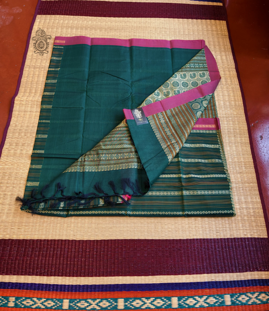 Handwoven Pure Cotton Kanchipuram Saree Deep Green