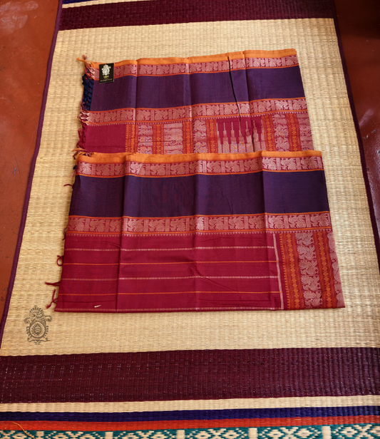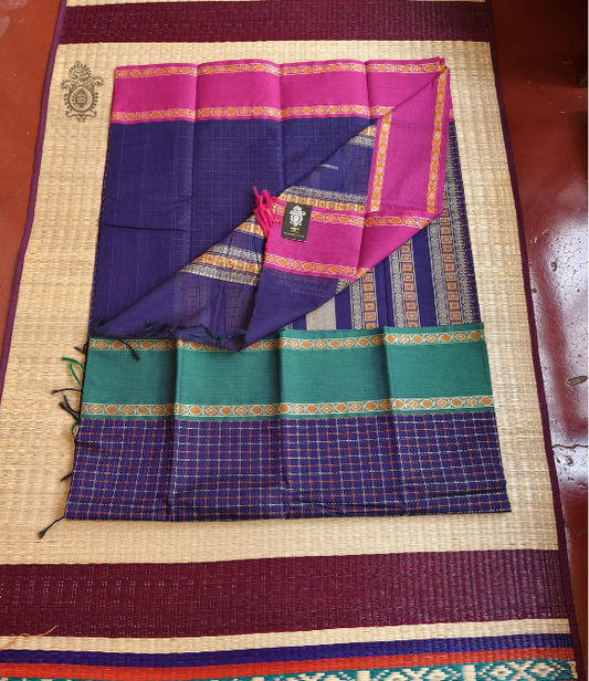 Handwoven Pure Cotton Kanchipuram Saree Navy Blue and Magenta