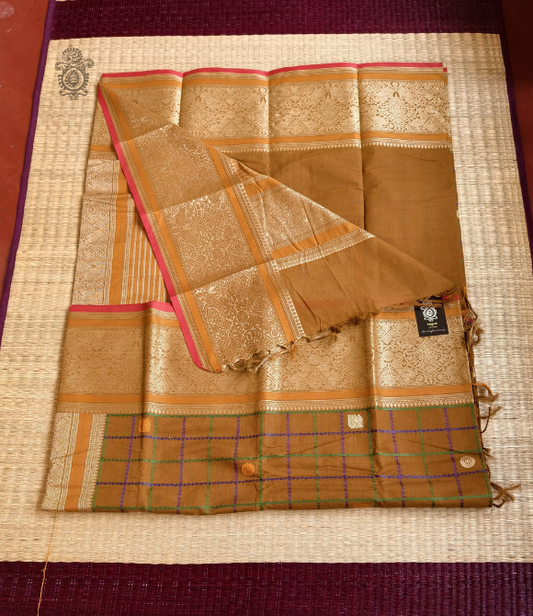 Handwoven Pure Cotton Kanchipuram Saree Deep Taupe