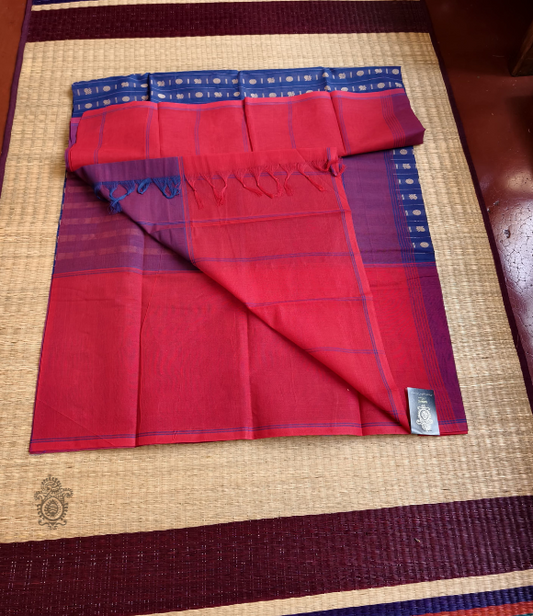 Handwoven Pure Cotton Kanchipuram Saree Deep Red