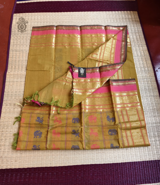 Handwoven Pure Cotton Kanchipuram Zari Saree Olive Green