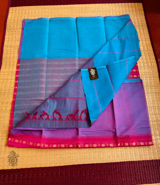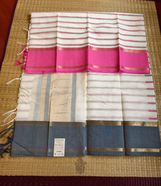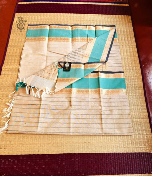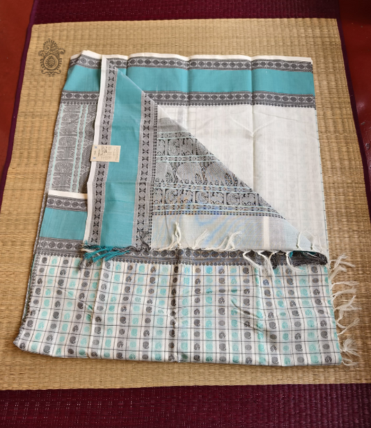 Handwoven Pure Cotton Kanchipuram Saree White and Blue