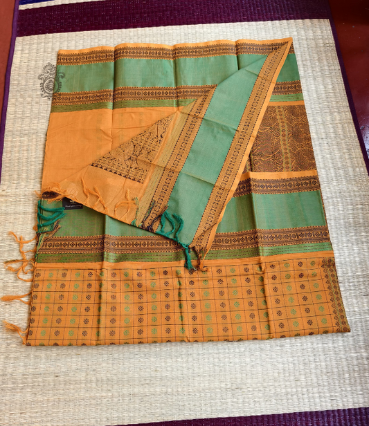 Handwoven Pure Cotton Kanchipuram Saree Turmeric Yellow