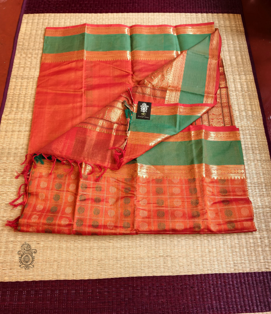 Handwoven Pure Cotton Kanchipuram Saree Orange