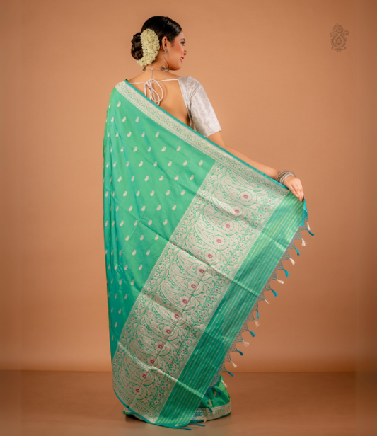 Handwoven Pure Katan Silk Kadhua Benarasi Saree Aqua Green