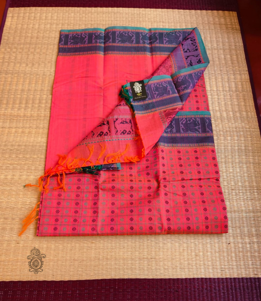 Handwoven Pure Cotton Kanchipuram Saree Peach Pink