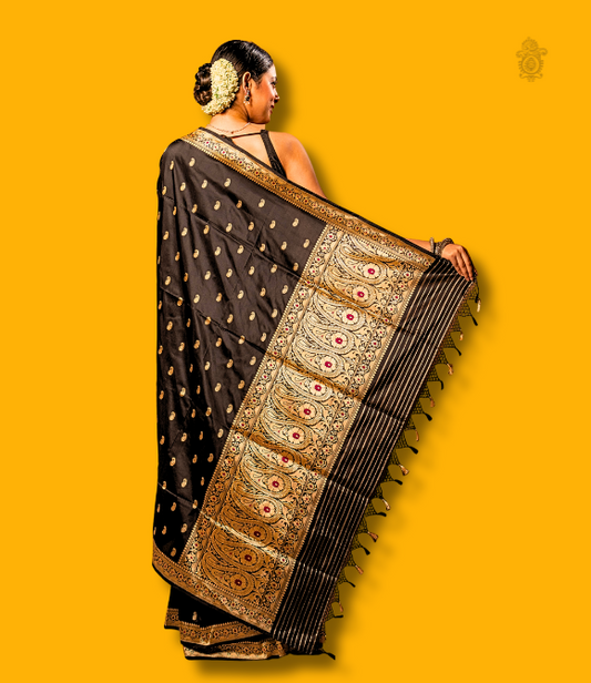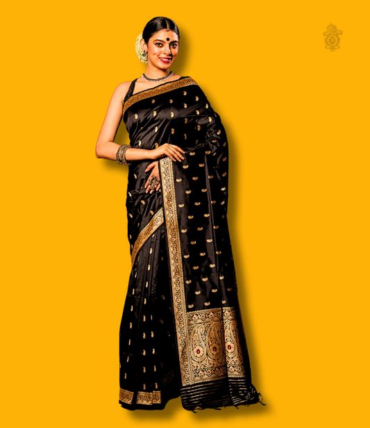 Handwoven Pure Katan Silk Kadhua Benarasi Saree Black