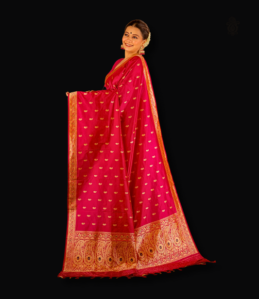 Handwoven Pure Katan Silk Kadhua Kairi Benarasi Saree Red