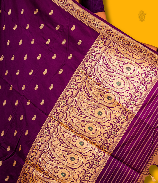 Handwoven Pure Katan Silk Kadhua Benarasi Saree Purple