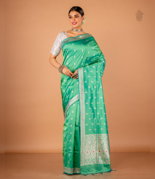 Handwoven Pure Katan Silk Kadhua Benarasi Saree Aqua Green