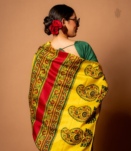 Handwoven Pure Mulberry Bengal Silk Saree Yellow - Red