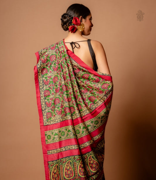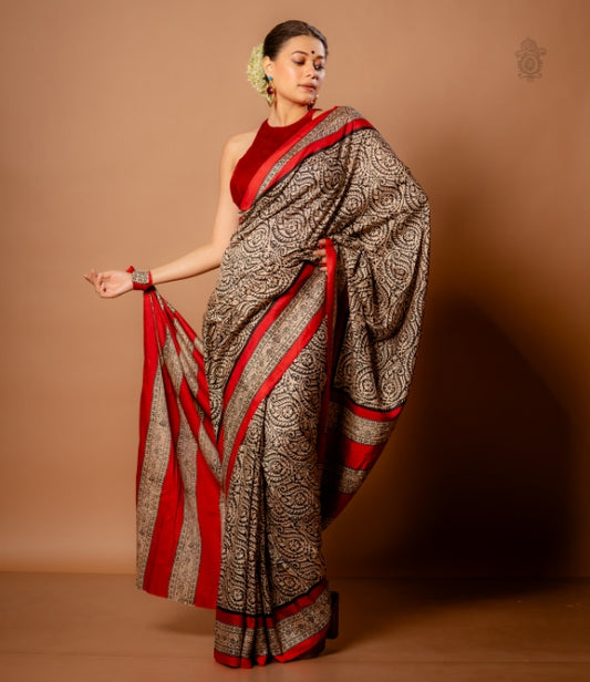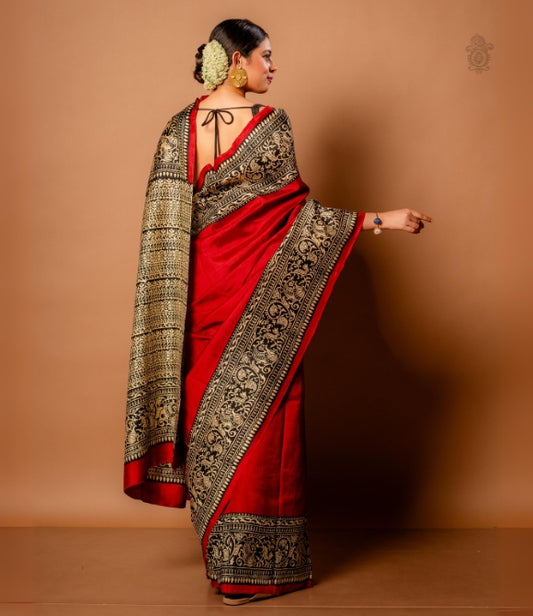 Handwoven Vidarbh Tussar Saree Red - Black