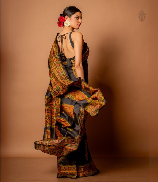 Handwoven Pure Mulberry Bengal Silk Saree Black Multicolour
