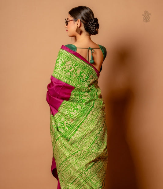 Handwoven Pure Mulberry Bengal Silk Saree Purple & Green